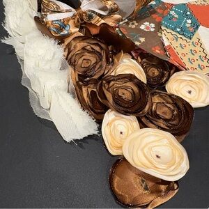 Brown & Cream DIY Assorted Craft Fabric and Ribbon Lot Over 100 Pieces