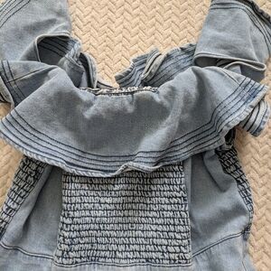 Tanya Taylor Chambray Flutter Sleeve Dress