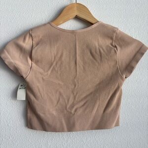 NWT Aerie Superchill Seamless Ring Cap Sleeve Bra Top Nude Neutral Rib Keyhole M