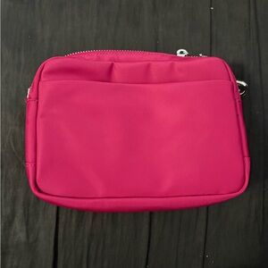Brand new crossbody bag in berry rumble/gold color. Has a cute metallic colored strap. Two zippered pockets with lots of space.