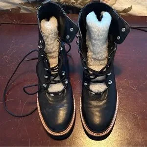 Stylish black leather boots featuring cozy shearling lining. Perfect for cold weather. Worn a few times. In perfect condition. Fast shipping! From a smoke free home.