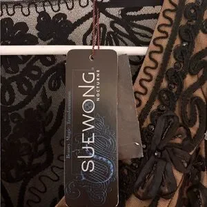 Sue Wong 3/4 sleeve dress with intricate lace overlay. Perfect for elegant occasions! NWT!
