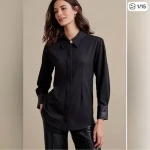Soft Surroundings Black Mattea Faux Leather Cuff Tunic Shirt