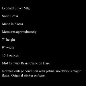 Vintage Brass Crane Sculpture Hollywood Regency Mid Century- 7”