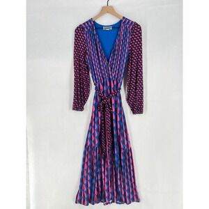 Boden Ophelia Wrap Midi Dress Womens 6R Multicolor Jersey Raindrop Geo Tie Waist.