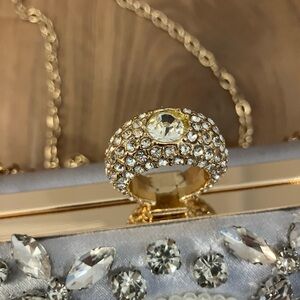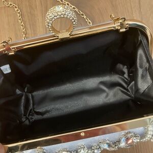 This stunning silver clutch is adorned with intricate embellishments, perfect for adding a touch of glamour to any outfit. Ideal for special occasions. Used once.
