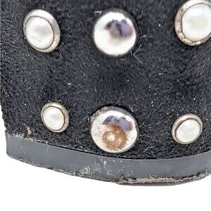 Very Good Used Condition although there is slight scuffing to the inside of the right boot as pictured and the studs/pearls right by where the shoes touch the ground show some damage/wear as pictured. Soles show light visible wear and have a bit of marker on them. Without other known flaws or defects.
