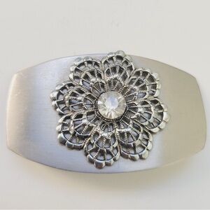 Pewter Floral Brooch with Center Stone. Dusty included
