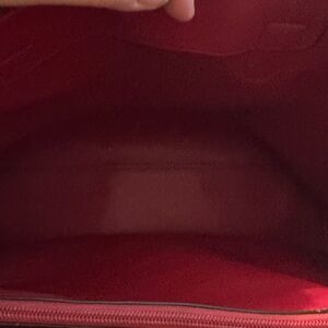 Elegant and versatile, this large leather tote is perfect for holding it all. Featuring a sleek black exterior with a luxurious red interior, this bag combines style and functionality. Ideal for everyday use, it offers ample space and a sophisticated look. No dust bag. Missing a button on side.