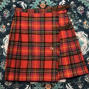 VTG Cambridge Dry Goods Red Tartan Plaid Pleated Wrap Mini Skirt