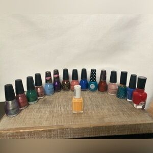 Vibrant collection of nail polishes in various colors including red, pink, blue, and gold. Perfect for any occasion. Get 20 bottles in total. Plus 4 bonus colors.! ( 16 colors shown ) you’ll get a total of 20 bottles. Tell me shades you like!