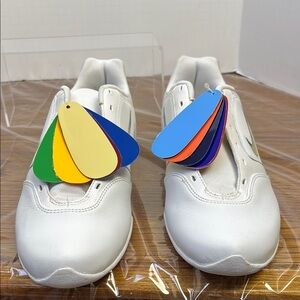 Sleek white Nike sneakers with an interchangeable color swoosh. Ideal for everyday style. Need shoelaces.