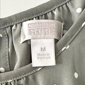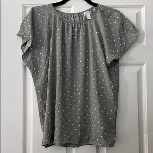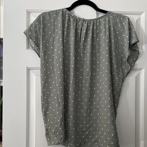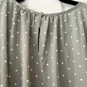 Add a touch of chic to your wardrobe with this stylish gray polka dot blouse. Perfect for any occasion, it offers a versatile and fashionable look.
