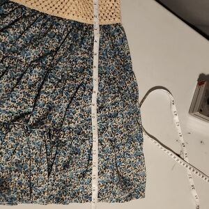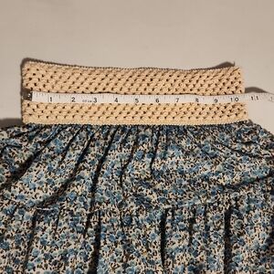 The Bella D mini skirt showcases a charming blue and cream palette, ideal for both casual and work occasions. Its bubble style is accentuated by smocked detailing and tiered layers, creating a playful silhouette. The lightweight fabric ensures comfort and effortless movement. I think size small. please see pics for sizes. This post if for skirt only. There is a different one for the shirt.