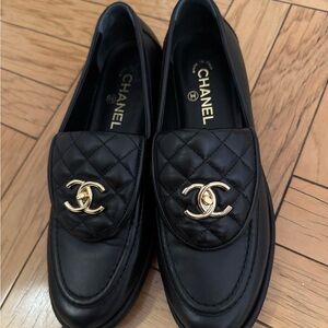 Chanel classic quilted black loafers with gold hardware. Worn once - in perfect condition. Box included.