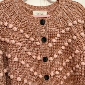 Textured knit cardigan with pom-pom accents. Button-up front. Cozy and stylish. Excellent condition. Size 2 = Medium