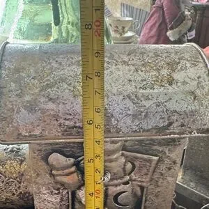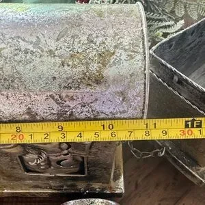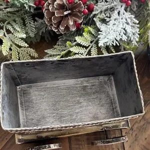 Charming vintage-style metal train decor. Features a rustic silver finish. Perfect for home decoration.