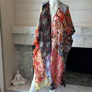 This boho multicolored mixed print kimono jacket is easy to wear with jeans or as a coverup!
