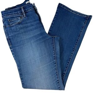 Levi's 515 bootcut jeans, color medium wash, feature a classic boot cut fit that widens below the knee to elongate legs. The mid rise sits comfortably below your natural waist, with a stretchy denim construction that ensures all-day comfort w/5-pocket style and zipper fly with button closure, size 8. Approximate measurements (laying flat): waist - 15.5", front rise - 9.5", inseam - 31". Jeans are gently used in good condition.