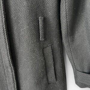 Women’s black mid-length coat featuring a timeless tailored silhouette with a structured collar and button front closure. Designed with functional front pockets and cuffed sleeves for a polished yet versatile look. The textured wool-blend fabric makes this coat suitable for fall and winter wear, ideal for work, casual outings, or elevated everyday styling.