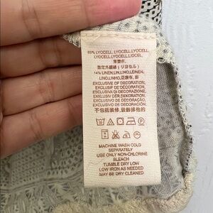 Free People - Beige Medallion Printed V Neck Long Sleeve Blouse Size Medium