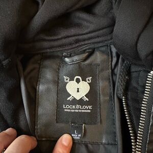 Sleek and stylish faux black leather jacket perfect for any occasion. Features a comfortable fit and durable design.
