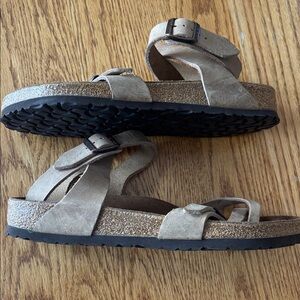 Anatomically shaped cork-latex footbed Details: two adjustable straps with individually adjustable metal pin buckles Sole: EVA The upper is made from extra thick, oiled nubuck leather with an open-selvage finish. Made in Germany