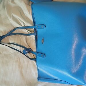 Elegant blue reversible tote with sleek design. Ideal for daily use. Comes with a makeup bag! Gorgeous bright turquoise blue! and soft black and gray. both sides NWOT! Really nice tote! I'm selling several other brand name items. Bundle and save. Cross posted. Thanks for looking!