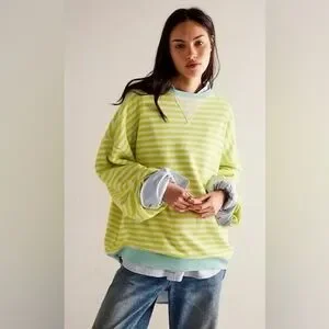 NWOT We The Free Classic Striped Oversized Crewneck ~Lime Combo~