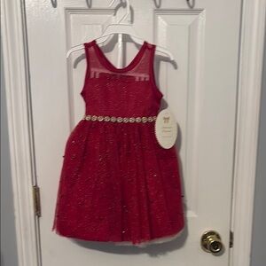 This vibrant red sundress features a sleeveless design with a scoop neck and is adorned with sequins for a sparkling effect. The knee-length skirt is made of a sheer material, adding a touch of elegance, making it perfect for a wedding guest or cocktail occasion.