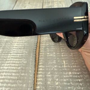 Chic black sunglasses with gold accent by Marc Jacobs. Perfect for a modern look. Glasses come with original case and cleaning cloth. Never worn. Perfect condition.