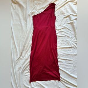 Step out in style with this chic one-shoulder burgundy dress. Perfect for any occasion, its elegant design and rich color make it a must-have addition to your wardrobe. New without tags. Approximately 44” from shoulder to hem.