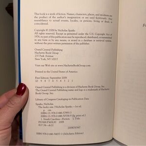 Enjoy the captivating story of 'The Lucky One' by Nicholas Sparks. This blue hardcover edition is perfect for your home office library.