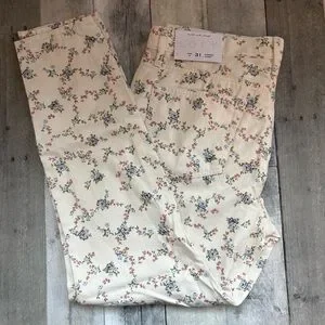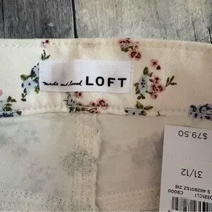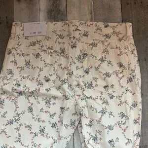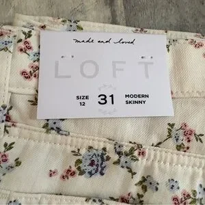 Size 31 NWT LOFT Floral Modern Skinny White Jeans. A great pair of jeans for the summer - a white background with an allover floral pattern.