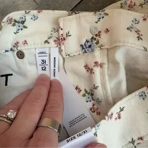 NWT LOFT Floral Modern Skinny White Jeans Sz 31 - 1217