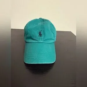 POLO Ralph Lauren Vintage Classic Leather Strap Adjustable Teal Green Hat Cap
