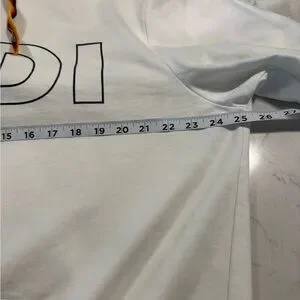 White with rainbow detailing along the sleeve cuffs and hem