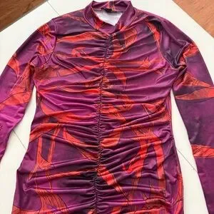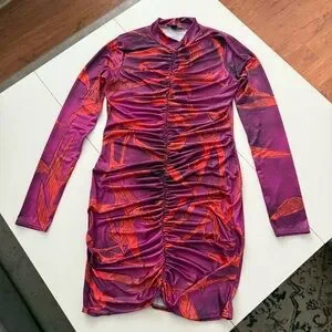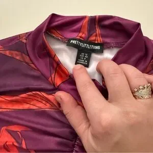 Pretty Little Thing Magenta Abstract Tropical Ruched Bodycon Dress Festival