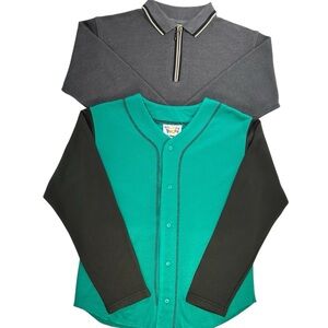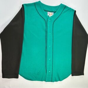 *shirt #1: front button baseball style jersey by Looney Tunes, color - green body w/black sleeves