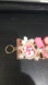 Charming bracelet with gold chain. Features pink accents and pearl details. Includes playful charms.