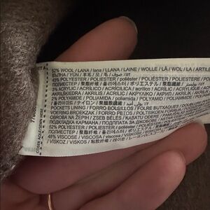 @srinidhirao Hi, i posted a photo of the tag. It’s 52% wool, 43% polyester, 3% acrylic, 2% polyamide