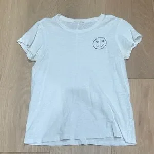 Rag & Bone White Tee with Heart Eyes Smiley Embroidery