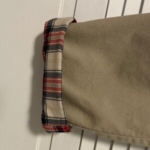 Straight fit flannel lined flex chinos. Khaki with red/blue/cream plaid lining. Excellent used condition. Size 36/30.