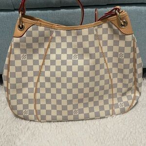 No brand dupe. There is some staining on the checkered parts of the bag and also on the faux leather. See additional photos.