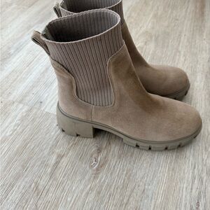 Step out in style with these chic Steve Madden suede tan ankle boots. Perfect for any occasion, they offer both comfort and elegance. Size 8
