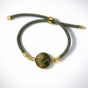 forest whisper bracelet, unakite bracelet, sliding cord bracelet, adjustable bracelet, gold tone bracelet, green stone bracelet, minimalist bracelet, gemstone bracelet, handmade bracelet, boho jewelry