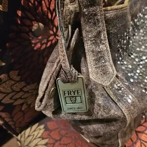 Chic Frye shoulder bag with a distressed brown finish. Features a stunning studded front. Ideal for stylish outings.