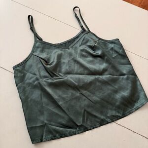 Forest Green Sage Satin Cropped Tank Top Camisole Boho Indie Sleaze Hippie Y2K