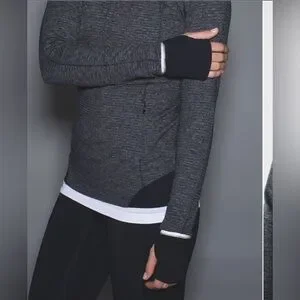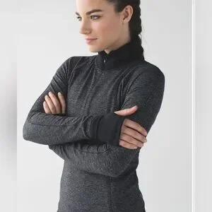 Classic Lululemon Runderful 1/2 Zip Pullover, designed for running and cold-weather workouts. Made from soft, sweat-wicking Rulu fabric with added stretch for comfort and shape retention. Features a high, structured collar, thumbholes with fold-over cuffins, and a sleek slim fit.