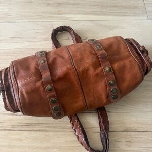 The exterior leather has developed a beautiful natural patina over time and remains in good vintage condition with wear consistent with age. The bag is structurally sound, with intact handles, stitching, and hardware.